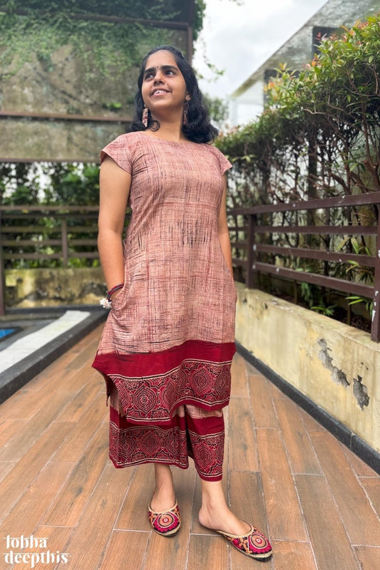 Set of 2- Earth Strokes Cream Short Kurta and Palazzo