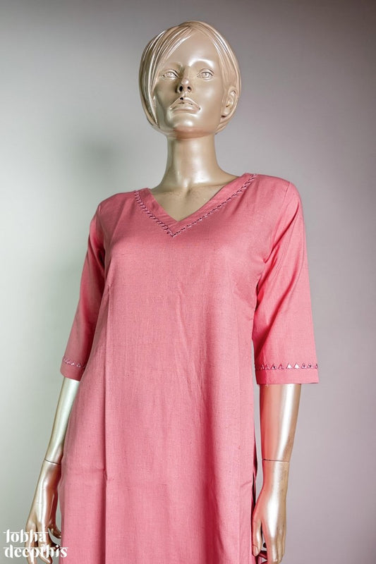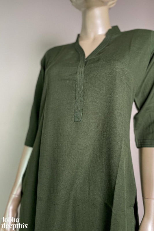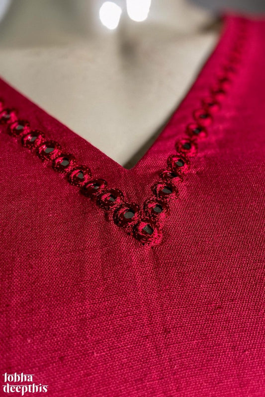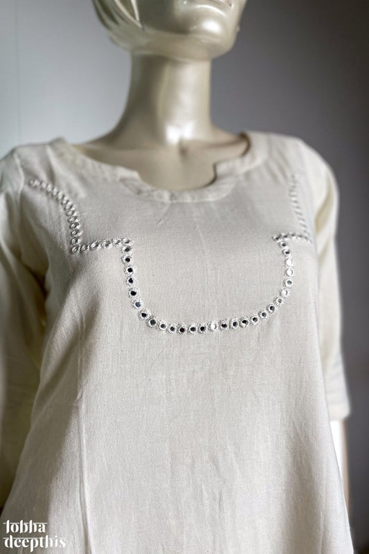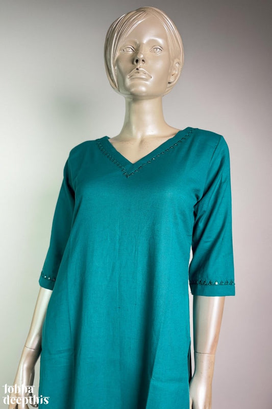 Mirrors on Peacock Blue Cotton Flax Kurta