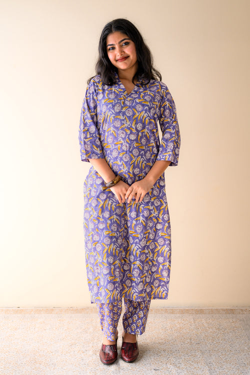 Set of 2- Winter Lilies Sanganeri Straight Kurta & Pants Set Set of 2- Winter Lilies Sanganeri Straight Kurta & Pants Set