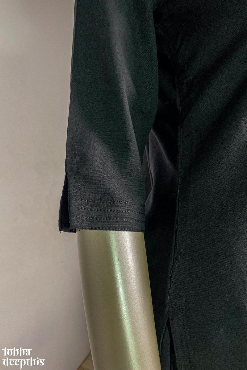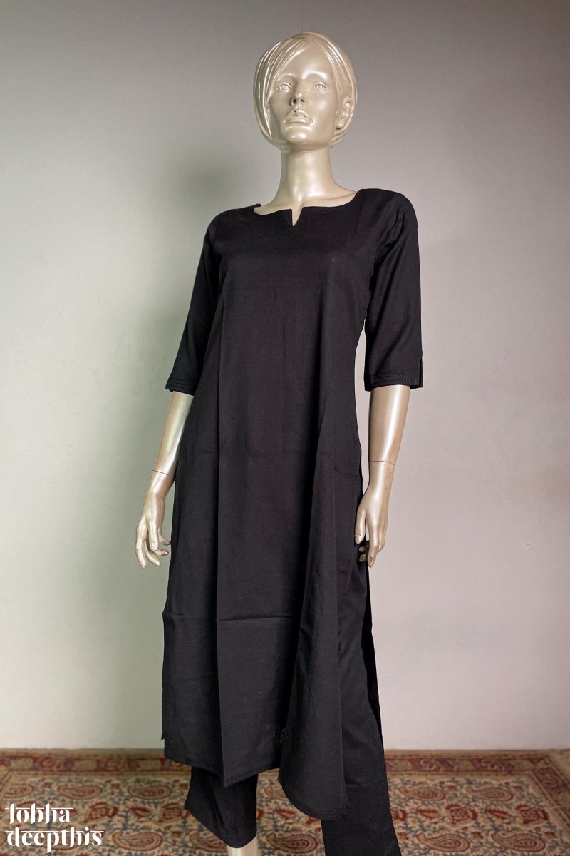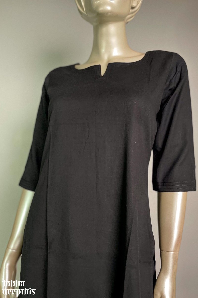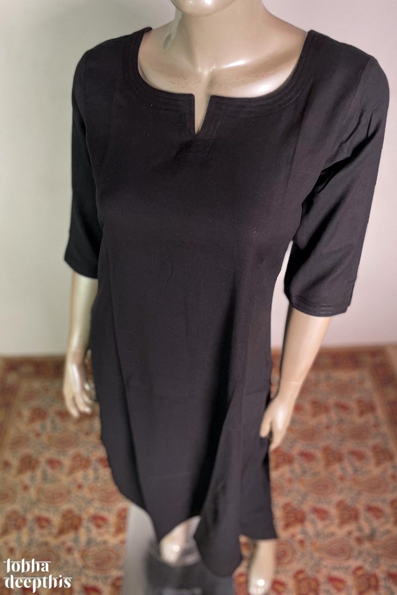 Black Cotton Flex Round Neck Kurta - Lobha Deepthis